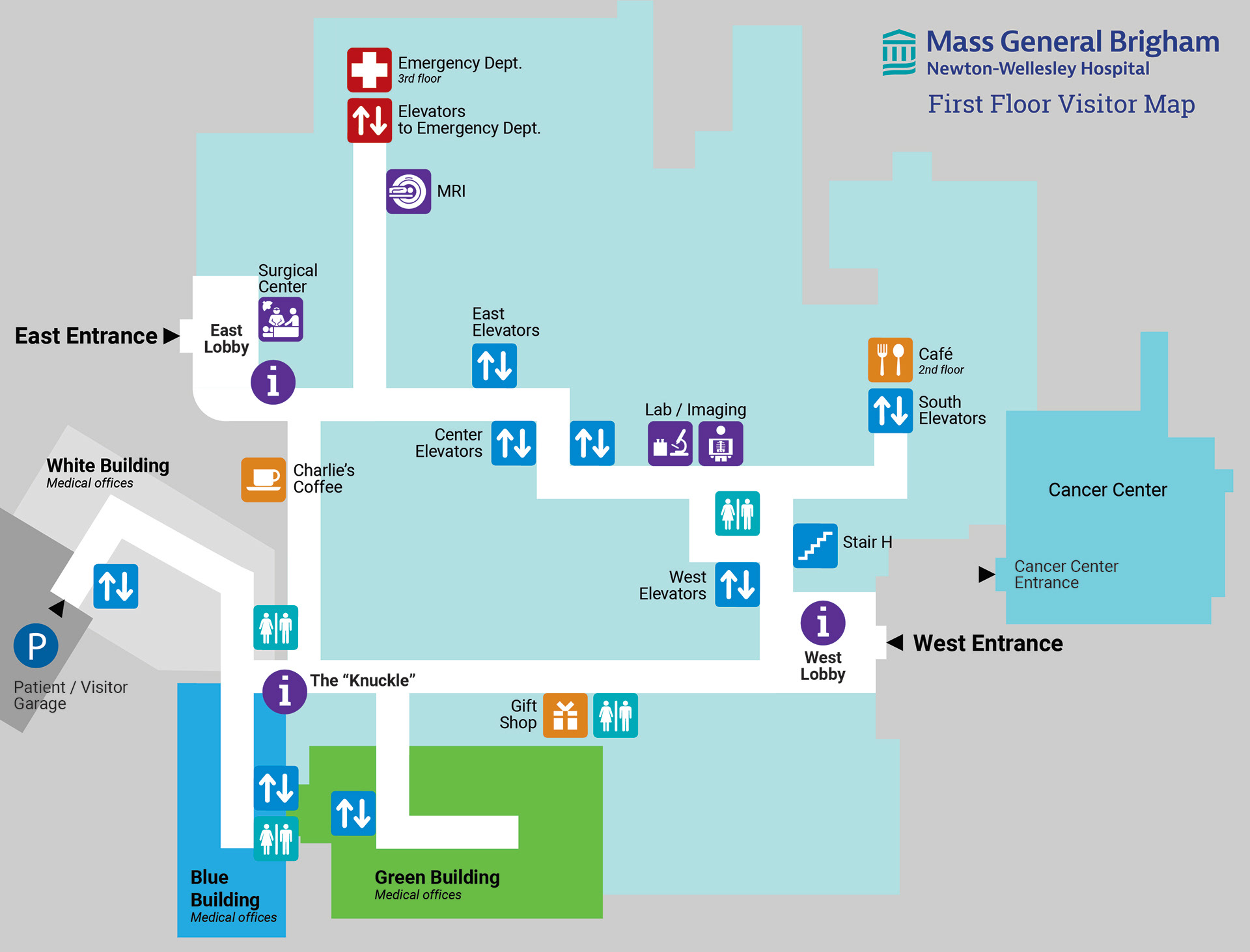 Reconfigured Mass General Hospital Visitor Map for the Newton-Wellesley branch.